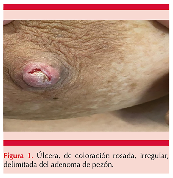 Se estableció el diagnóstico de adenoma del pezón; se planteó tratamiento quirúrgico, pero la paciente lo rechazó.