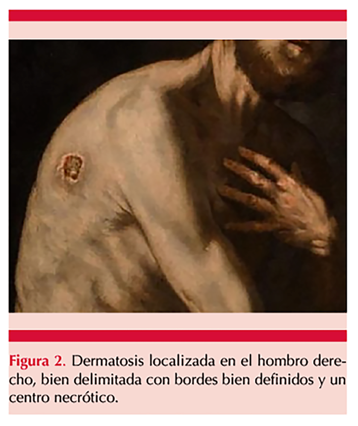 En la actualidad, se han propuesto diversas hipótesis diagnósticas de la enfermedad bíblica de Job, que incluyen desde sarna, leishmaniasis, sífilis, psoriasis y viruela hasta el pénfigo.3 Sin embargo, a través de este análisis dermatológico, se ha llegado a la conclusión de que las lesiones de la piel representadas en la pintura podrían compartir características similares a las observadas en el pioderma gangrenoso.