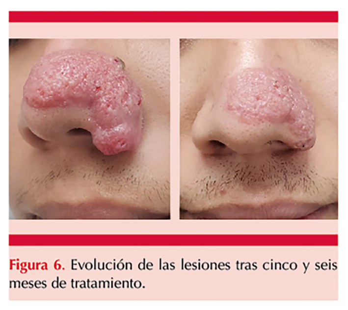 En la actualidad el paciente sigue en tratamiento y seguimiento en consulta, con alivio de la lesión respecto de la valoración inicial. Figura 6
